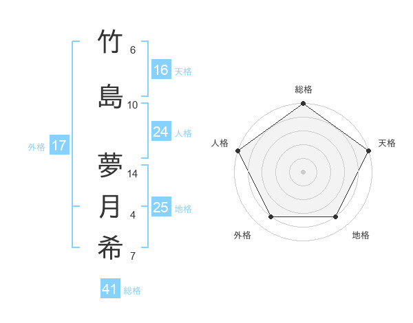 竹島 夢月希さんの総格は41画の5点!