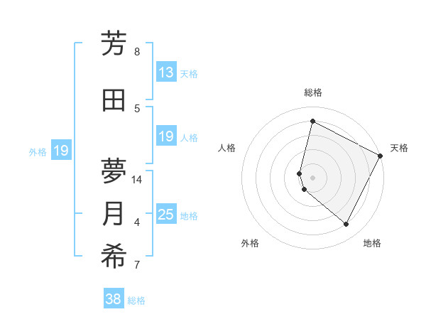 芳田 夢月希さんの総格は38画の4点!