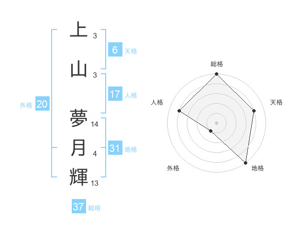 上山 夢月輝さんの総格は37画の5点!