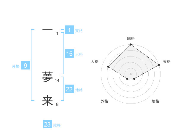 一 夢来さんの総格は23画の5点!