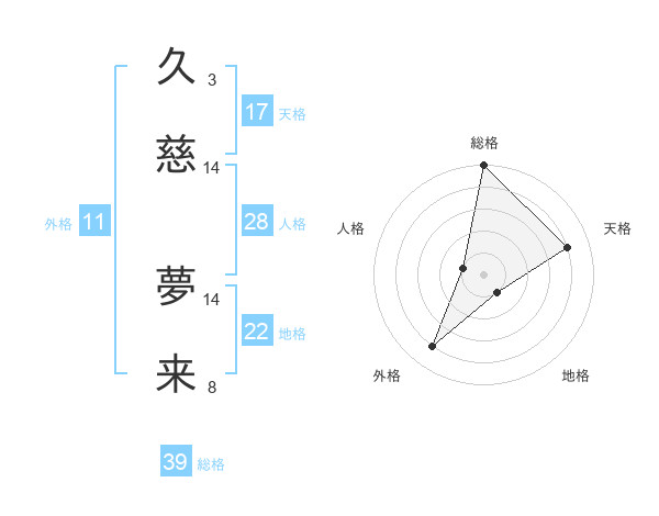久慈 夢来さんの天格は17画の4点!