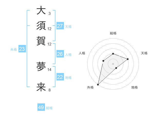 大須賀 夢来さんを姓名の画数から五運を鑑定