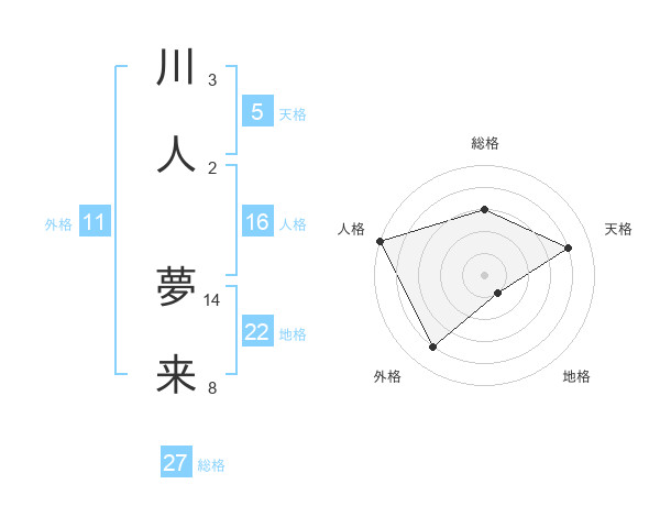 川人 夢来さんを姓名の画数から五運を鑑定