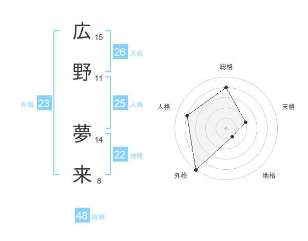 広野 夢来さんの外格は23画の5点!