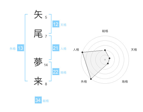 矢尾 夢来さんの外格は13画の5点!