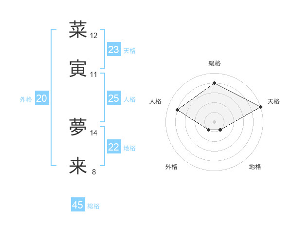 菜寅 夢来さんを姓名の画数から五運を鑑定