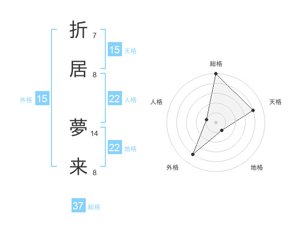 折居 夢来さんの天格は15画の4点!