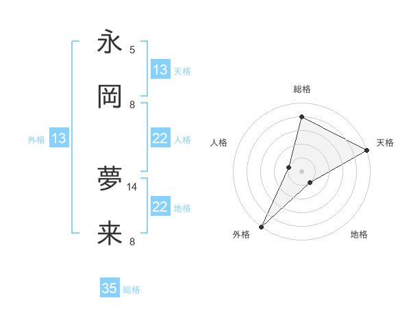 永岡 夢来さんを姓名の画数から五運を鑑定
