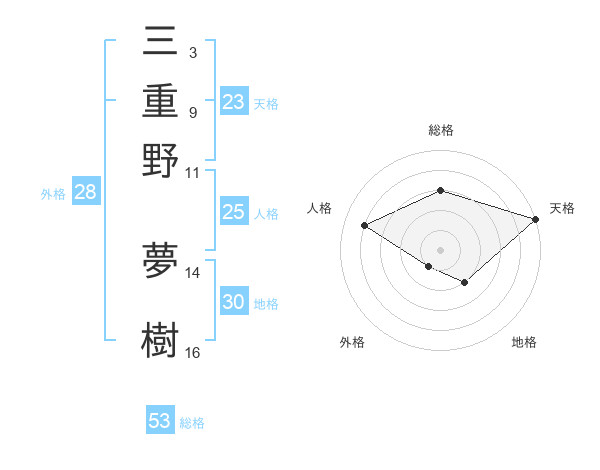 三重野 夢樹さんの総格は53画の3点!