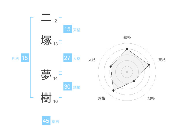 二塚 夢樹さんを姓名の画数から五運を鑑定