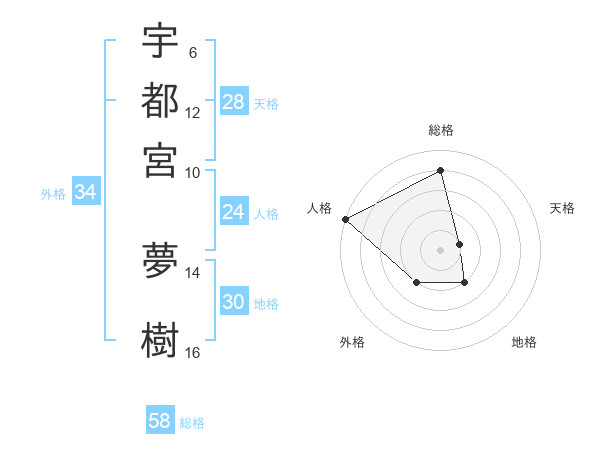 宇都宮 夢樹さんを姓名の画数から五運を鑑定