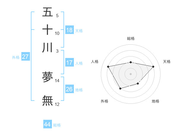 五十川 夢無さんを姓名の画数から五運を鑑定