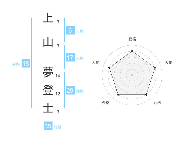 上山 夢登士さんを姓名の画数から五運を鑑定