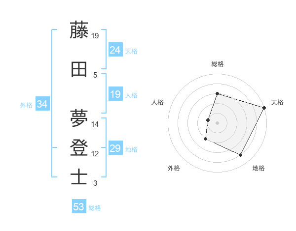 藤田 夢登士さんを姓名の画数から五運を鑑定