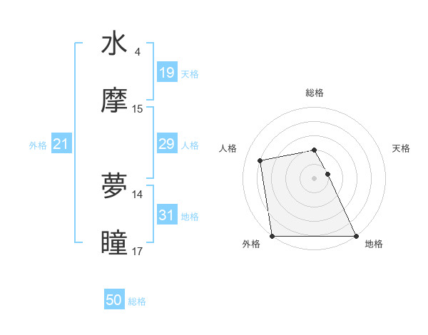 水摩 夢瞳さんの外格は21画の5点!