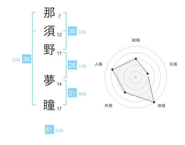 那須野 夢瞳さんの総格は61画の3点!