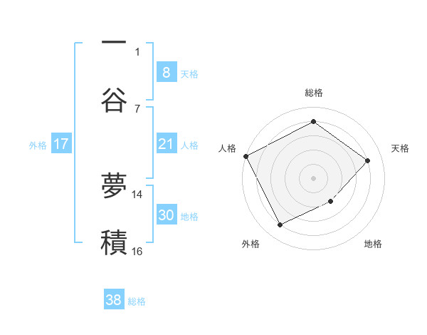 一谷 夢積さんの総格は38画の4点!