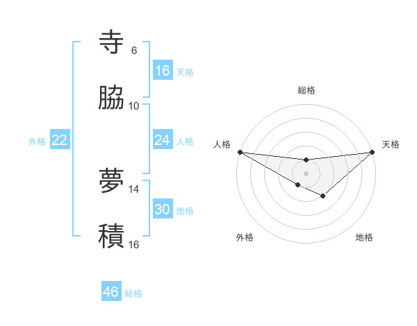 寺脇 夢積さんを姓名の画数から五運を鑑定