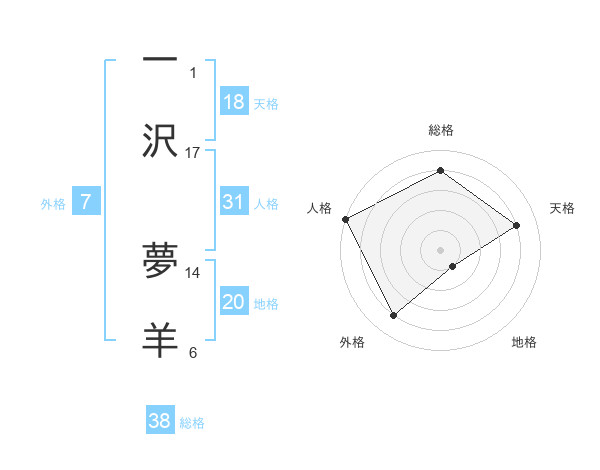 一沢 夢羊さんを姓名の画数から五運を鑑定