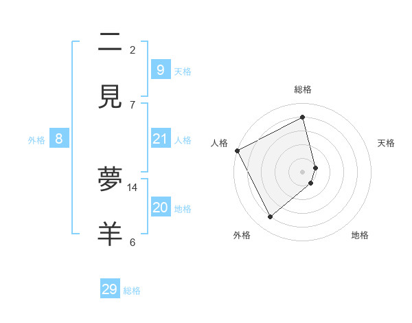 二見 夢羊さんの総格は29画の4点!