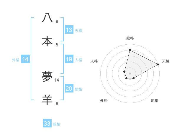 八本 夢羊さんを姓名の画数から五運を鑑定