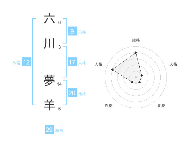 六川 夢羊さんを姓名の画数から五運を鑑定