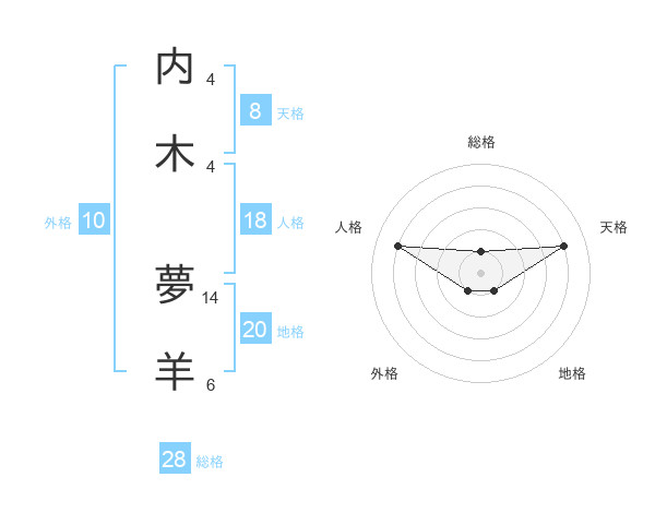 内木 夢羊さんを姓名の画数から五運を鑑定