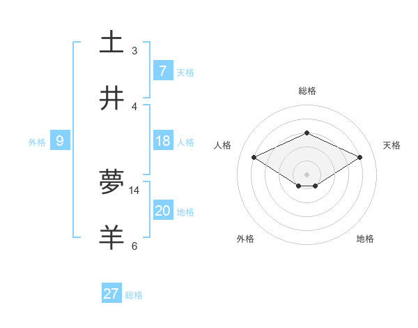 土井 夢羊さんの総格は27画の3点!