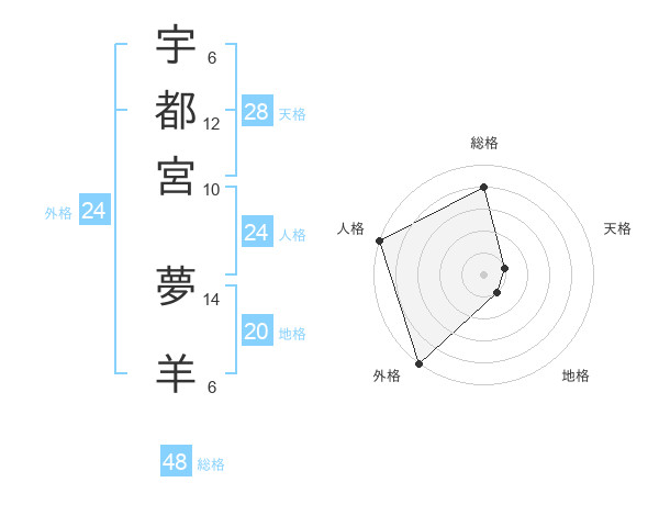 宇都宮 夢羊さんを姓名の画数から五運を鑑定