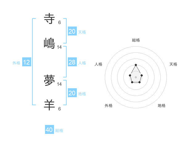 寺嶋 夢羊さんの総格は40画の2点!