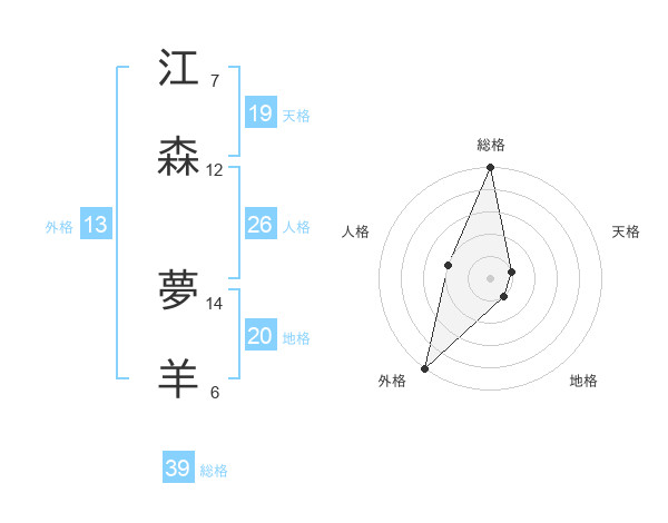 江森 夢羊さんの総格は39画の5点!