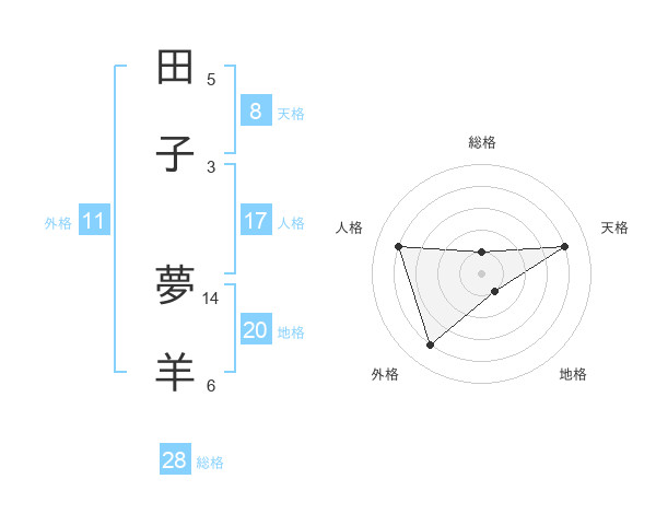 田子 夢羊さんの総格は28画の1点!