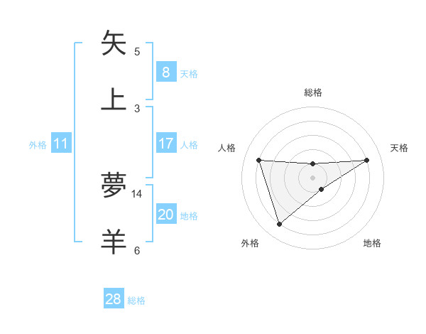 矢上 夢羊さんの総格は28画の1点!
