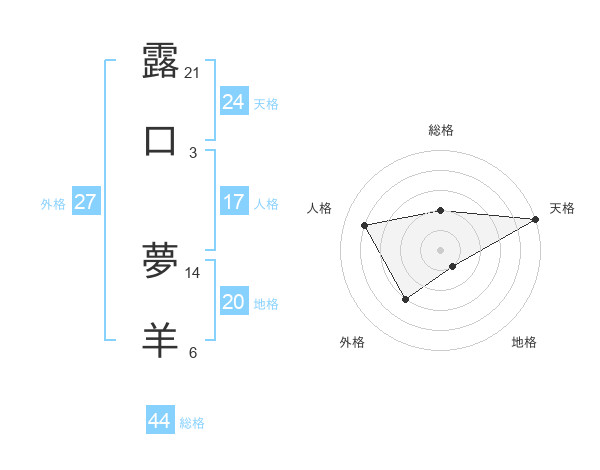 露口 夢羊さんの総格は44画の2点!