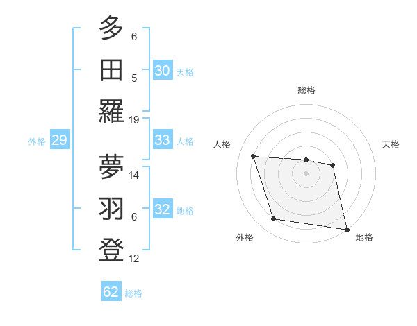 多田羅 夢羽登さんを姓名の画数から五運を鑑定