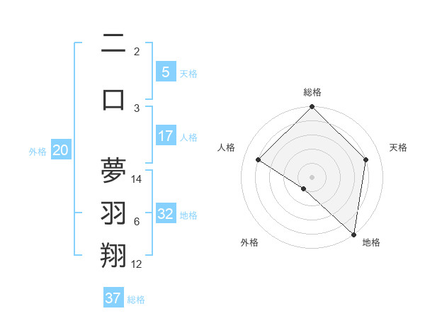 二口 夢羽翔さんを姓名の画数から五運を鑑定