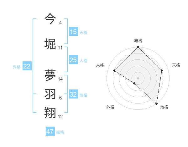 今堀 夢羽翔さんを姓名の画数から五運を鑑定