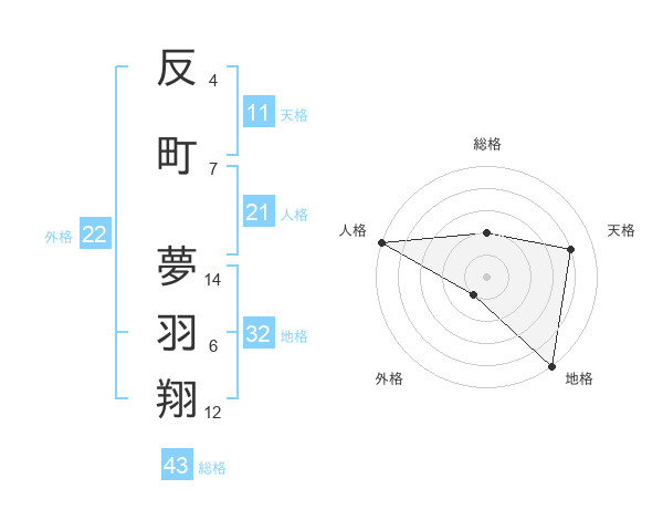 反町 夢羽翔さんを姓名の画数から五運を鑑定
