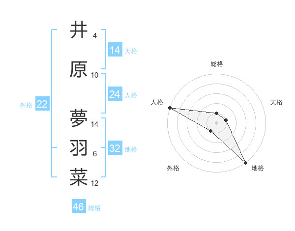 井原 夢羽菜さんの地格は32画の5点!