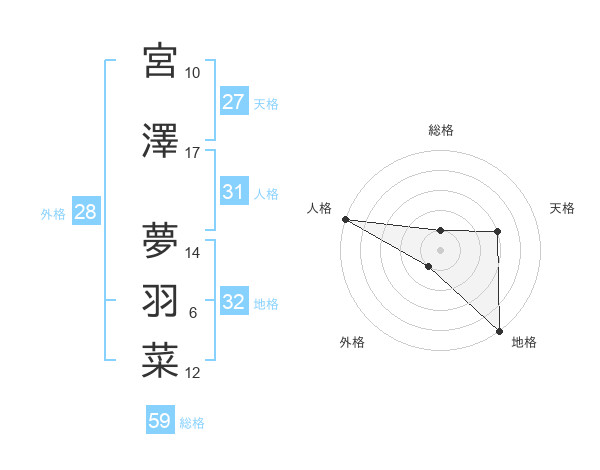 宮澤 夢羽菜さんを姓名の画数から五運を鑑定
