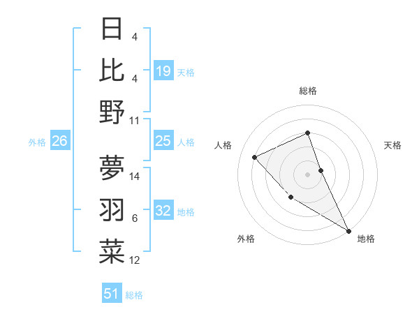 日比野 夢羽菜さんを姓名の画数から五運を鑑定
