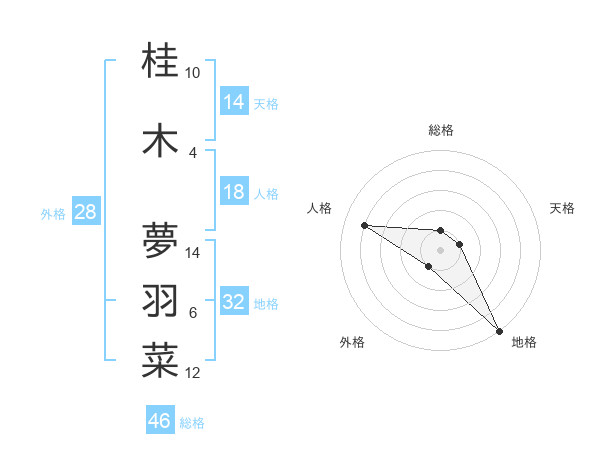 桂木 夢羽菜さんを姓名の画数から五運を鑑定