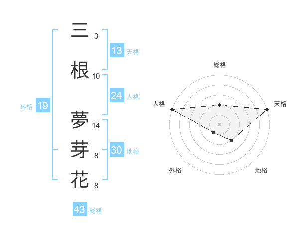 三根 夢芽花さんを姓名の画数から五運を鑑定