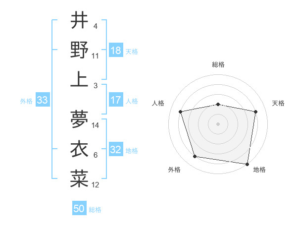 井野上 夢衣菜さんを姓名の画数から五運を鑑定