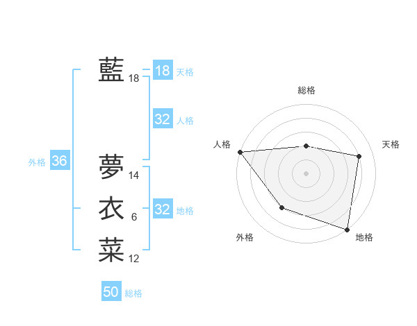 藍 夢衣菜さんを姓名の画数から五運を鑑定