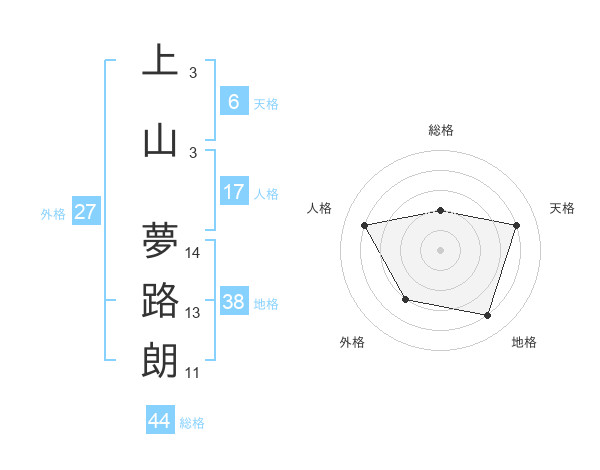 上山 夢路朗さんの総格は44画の2点!