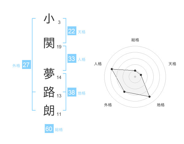 小関 夢路朗さんの総格は60画の1点