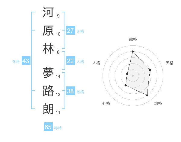 河原林 夢路朗さんを姓名の画数から五運を鑑定