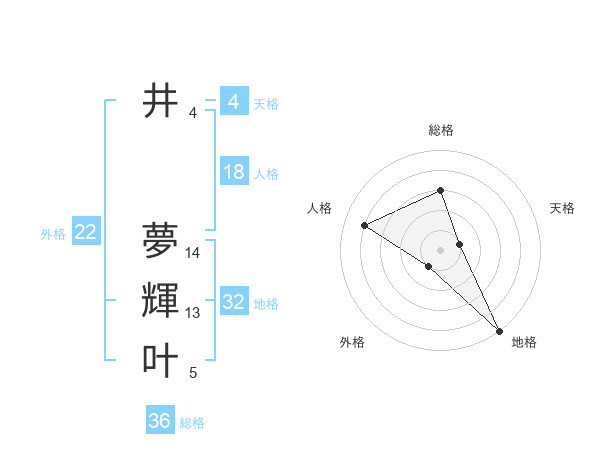 井 夢輝叶さんの外格は22画の1点!