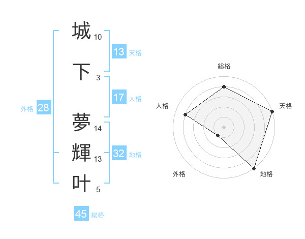 城下 夢輝叶さんを姓名の画数から五運を鑑定